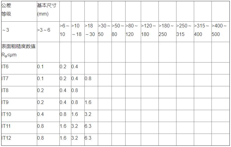 表3 公差等級(jí)與表面粗糙度值(用于通用機(jī)械)