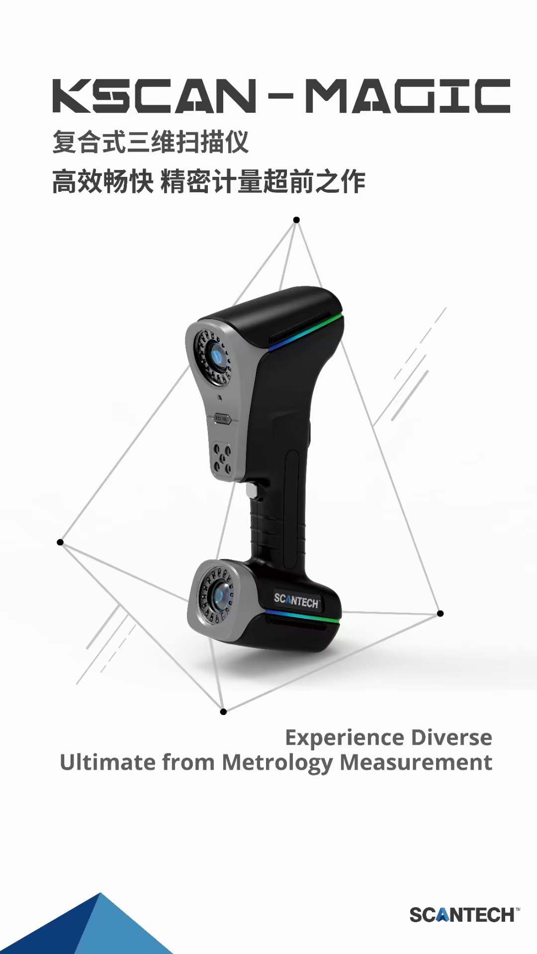 KSCAN-Magic系列是全球首款紅外+藍色激光計量級復合式三維掃描儀,標配五種工作模式:全球首創紅外平行激光大面幅掃描,藍色交叉激光高速掃描,藍色平行激光精細掃描,單束藍色激光深孔掃描,內置全局攝影測量系統。